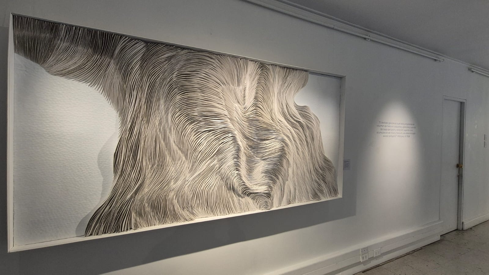 Fue en estas salidas que comencé a observar diversas dinámicas de nieve y hielo que me llamaban la atención. Por ejemplo, cómo el viento puelche produce en el suelo una acumulación de capas de nieve blanda sobre la superficie, lo que en términos técnicos se denomina “manto nivoso”, nombre del cual deriva la interpretación de la obra en yeso y gasa expuesta en la sala.