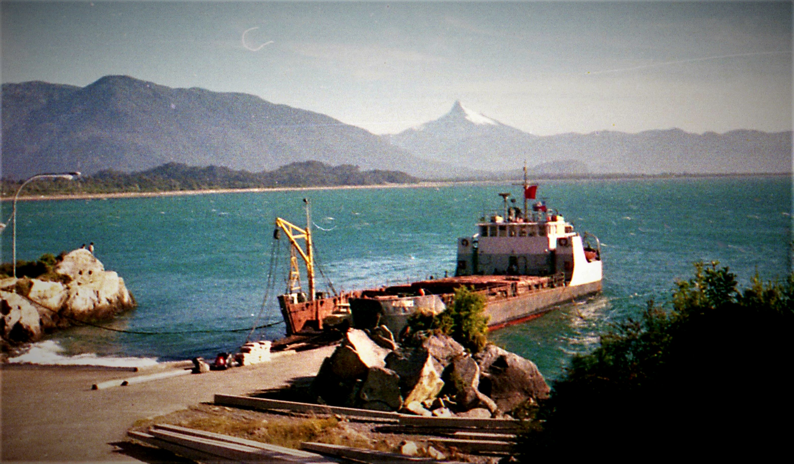 [Crédito de la fotografía: CHAITÉN, BARCAZA "RÍO CISNES" EN EL MUELLE, 1988 [Fotografía], colección Walter Eduardo Foral Liebsch, 1988, Archivo Enterreno https://www.enterreno.com/moments/chaiten-barcaza-rio-cisnes-en-el-muelle-1988 .