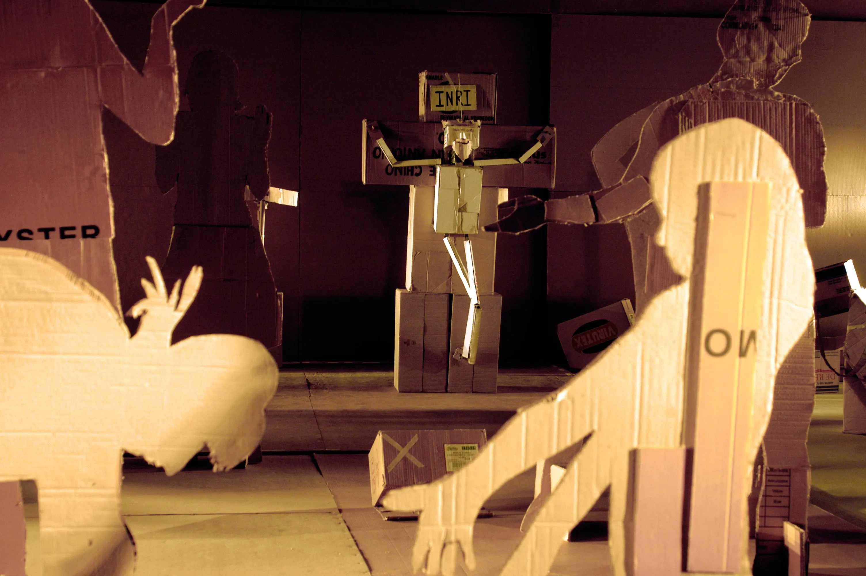 Un gran ejemplo de esto es el trabajo de Yolin como diseñadora integral de la obra Cristo, de la compañía Teatro de Chile. Ante la falta de presupuesto para la escenografía durante una residencia en Holanda, Claudia decidió recolectar cajas de cartón de la basura. Esta materialidad inesperada en ese contexto asombró al público europeo y se constituyó en una fortaleza artística. Al remontar la obra en Italia, el escenógrafo local inicialmente estaba indignado por tener que trabajar con basura, pero después logró ver el valor en la transformación de este elemento.