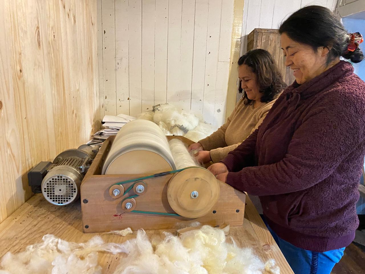 Además del acompañamiento formativo, la Corporación Futrono ha logrado fortalecer el oficio generando un espacio físico estable para el trabajo textil. En sus oficinas hoy funcionan un centro de lavado, cardadoras y cuatro telares mapuche instalados, lo que permite que las artesanas acudan de manera permanente a cardar, urdir, hilar o terminar sus piezas. Este lugar se ha convertido en un pequeño taller comunitario donde el trabajo ya ocurre de forma colectiva, compartiendo herramientas, tiempos y procesos. La proyección es continuar creciendo: la corporación busca habilitar un espacio aún más amplio para sostener el desarrollo del clúster textil que se ha ido consolidando en la comuna.