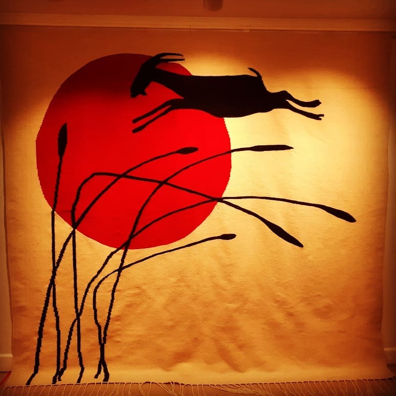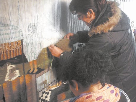 Empezábamos primero tejiendo sentaditas y después arriba de la silla, y así. Y después, andamios para poder llegar arriba a terminar y cortar, sacar, hacer las terminaciones. Así que ahí nos entretuvimos y pudimos hacer esos dos tapices que también fueron donados para que queden también expuestos de manera permanente y como testimonio de lo que, no tanto de lo que fue la Escuela, pero sí de las tejedoras que existen en el territorio.