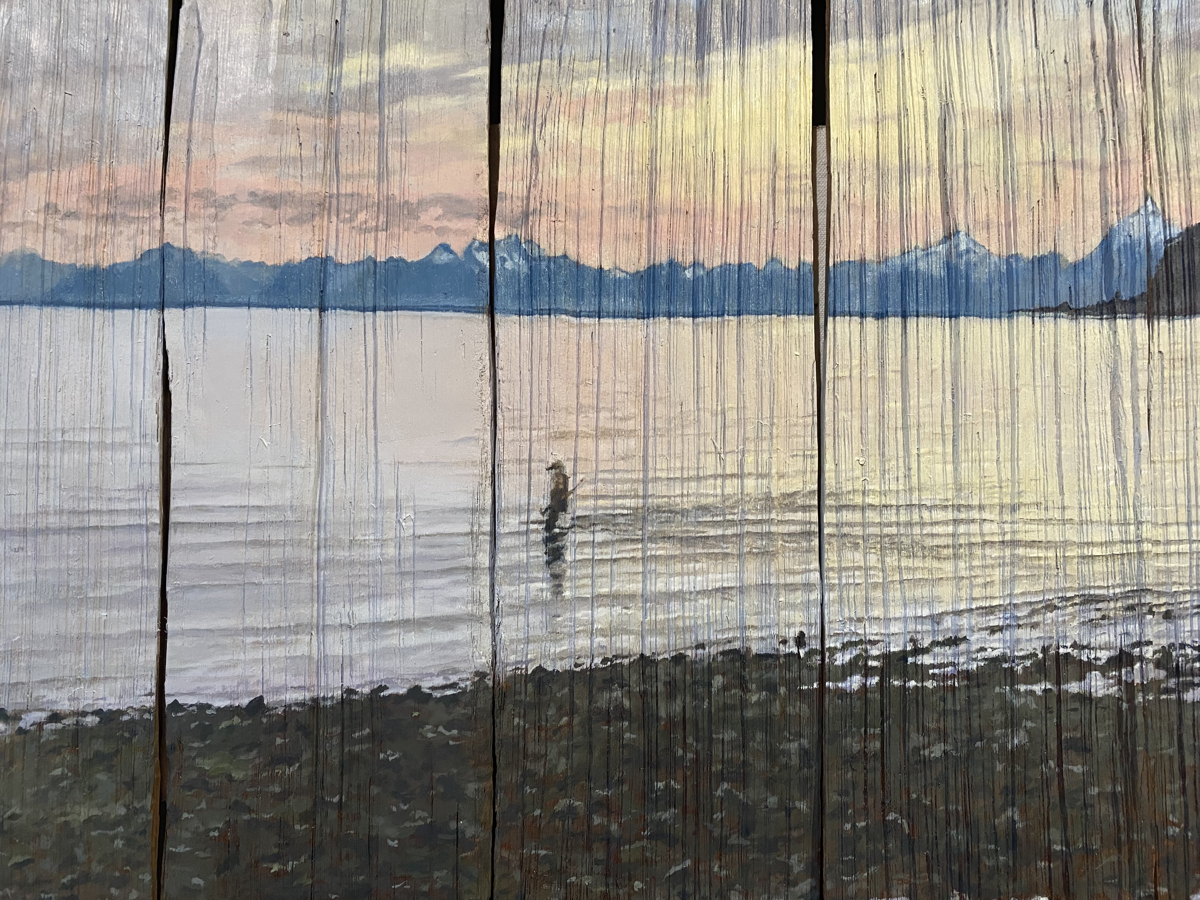 Es un proceso que me encanta. No lijo la tejuela; dejo que la veta y la historia del árbol sean parte de la obra. Es un desafío, a veces incluso me provoca dolores de cabeza, pero encuentro muy interesante cómo dialogan la historia cultural y natural de la tejuela con la pintura.